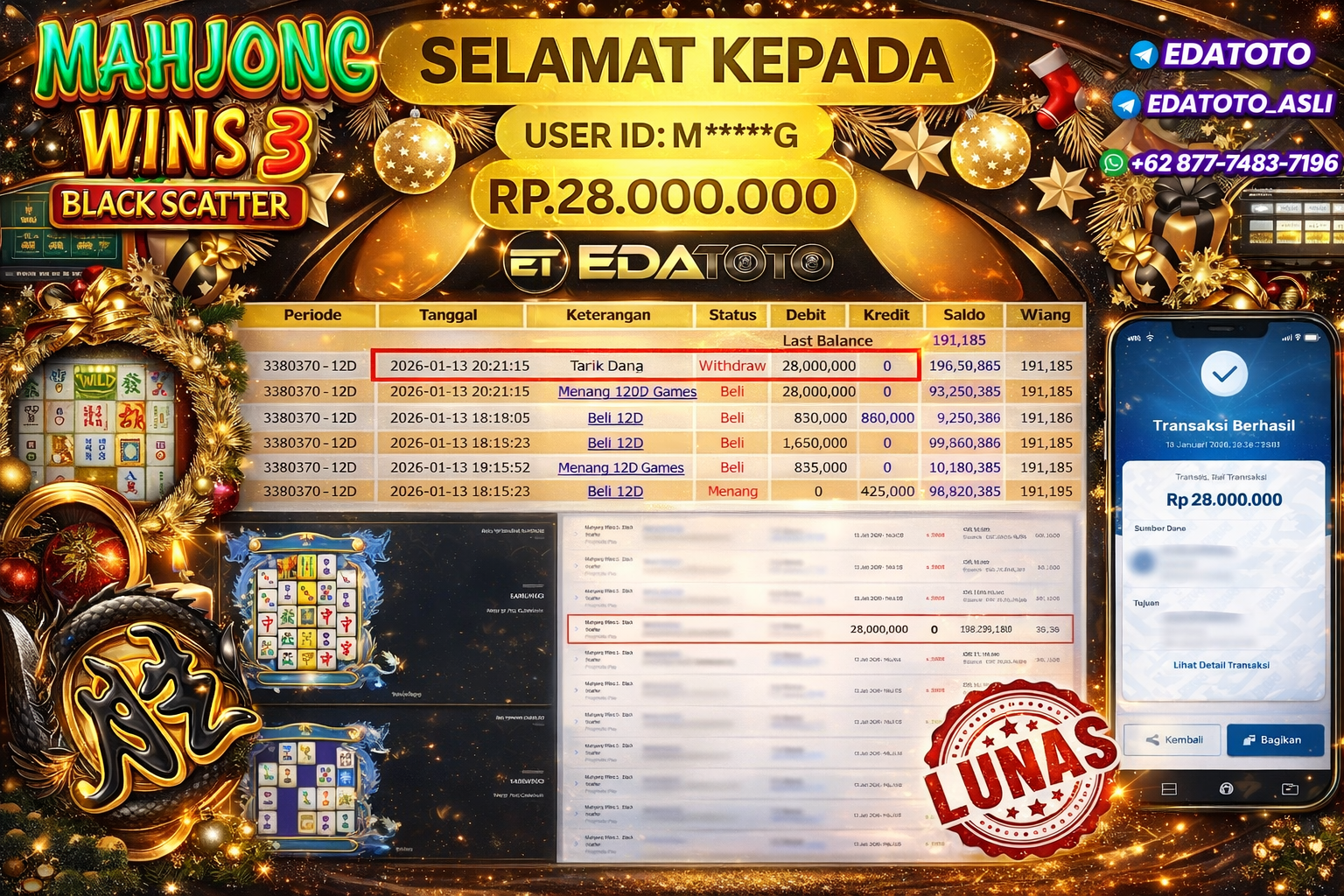 Selamat Kepada Pemilik user ID : M*****G Hari/Tanggal :selasa/ 13, Januari 2026 Jackpot : Rp. 28,000,000 JT Withdraw : 28,000,000 . . .