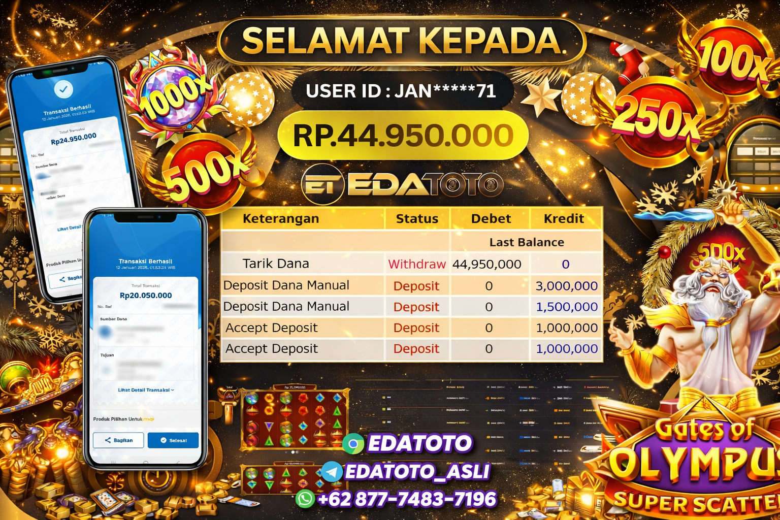 Selamat Kepada Pemilik user ID : JAN*****71 Hari/Tanggal :kamis/ 11, Januari 2026 Jackpot : Rp. 44,950,000 JT Withdraw : 44,950,000 . . .