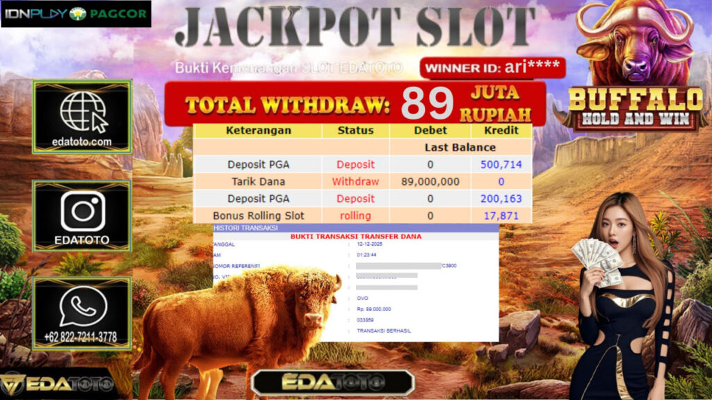 Selamat kepada member setia EDATOTO telah mendapatkan JP Bermain Di : Buffalo Win